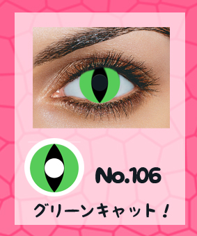 猫ちゃんのように、ハーフムーンEYES! こちらはグリーン淡色のキャッツアイになります。